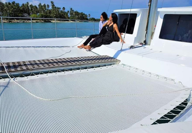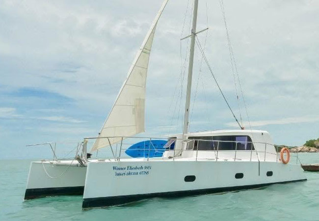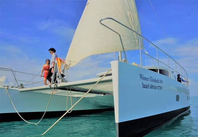 Winner Catamaran Charter offers a premium sailing experience for groups up to 16 passengers (price includes up to 8). This fully air-conditioned catamaran features a comfortable living room, a bedroom, and a restroom. It comes equipped with a slider, paddle board, and even offers fresh Sashimi on board.
