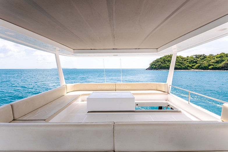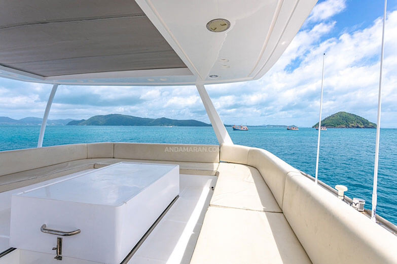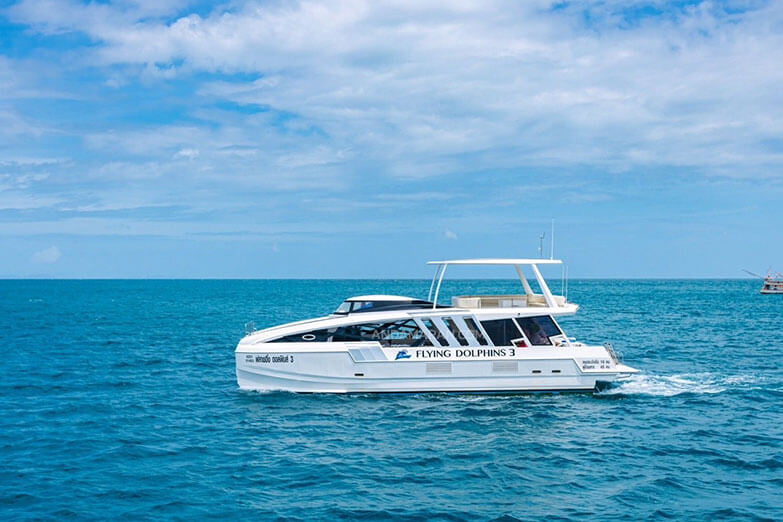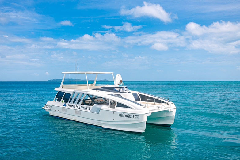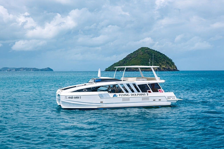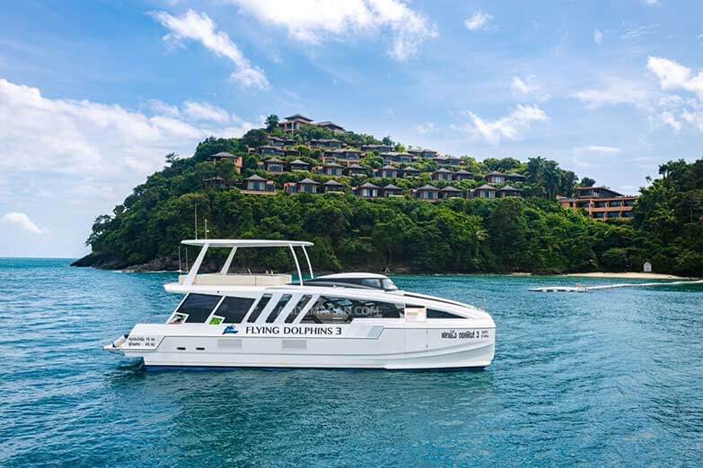 Experience a unique yacht trip with “Flying Dolphins 3”. This 72ft vessel is specialized for family groups and kids, featuring a fun inflatable slide and ample space for relaxation. It is well-designed for fast travel between Phuket islands with full safety equipment and professional service.