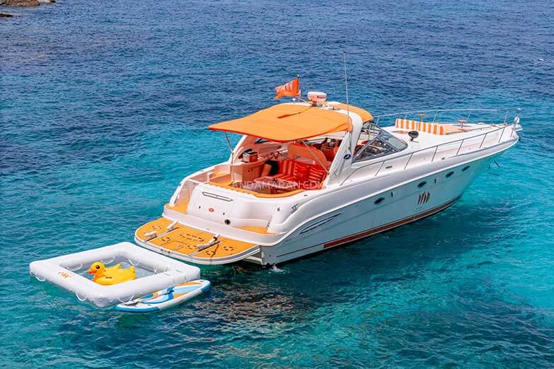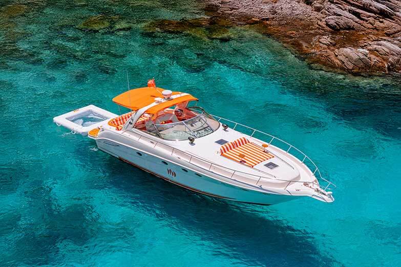 Experience the ultimate relaxation on the Vodka 46ft Searay Sundancer. Escape traditional hotel stays and sail through crystal-clear waters, breathe fresh sea air, and capture stunning photos. Whether you want to fish, paddle, or simply sunbathe, this spacious yacht is perfect for family gatherings or small groups.