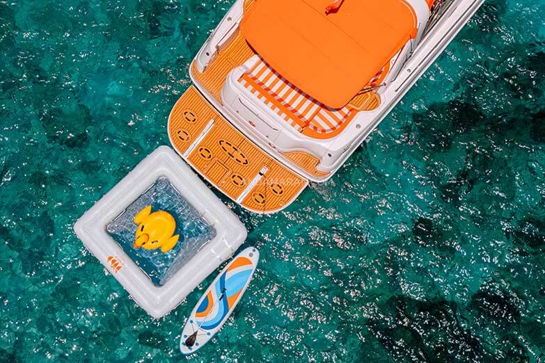 豪华空调动力游艇,设有1间卧室和1间卫生间,最多可容纳15位宾客。 - Premium Fun: Fully equipped with water activities including snorkeling, swimming, and Paddle Board.