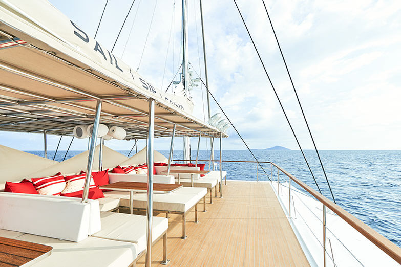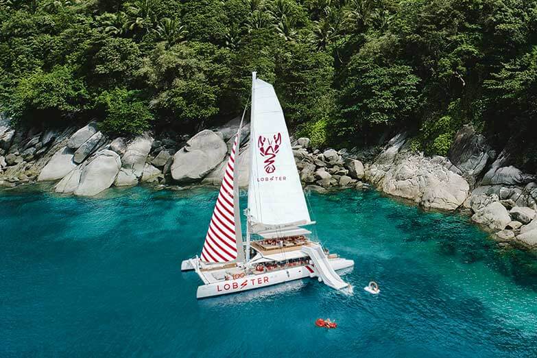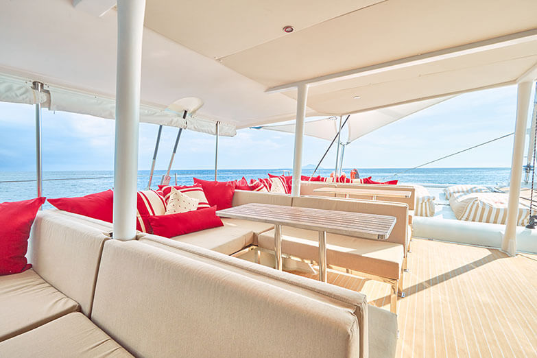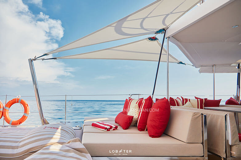 - Luxury Party Concept: Stunning red-themed sailing catamaran designed exclusively for private yacht parties.