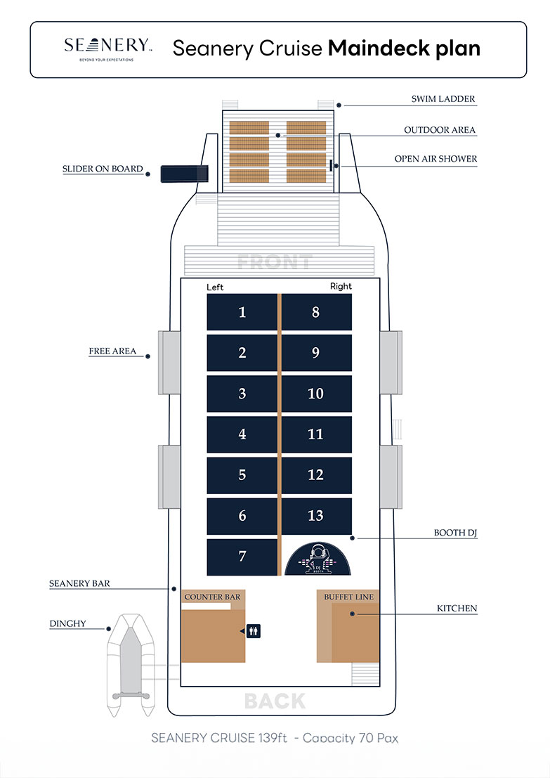 船上娱乐:现场DJ、齐全的灯光与音响系统,打造极致派对。 - Food & Drinks: Free unlimited soft drinks and a delicious buffet lunch onboard.