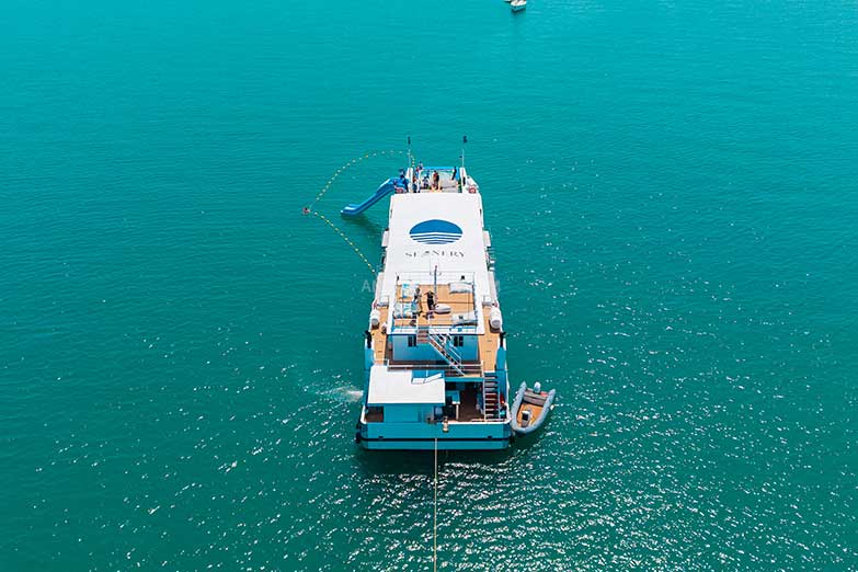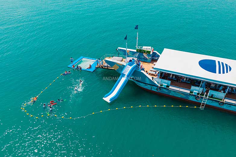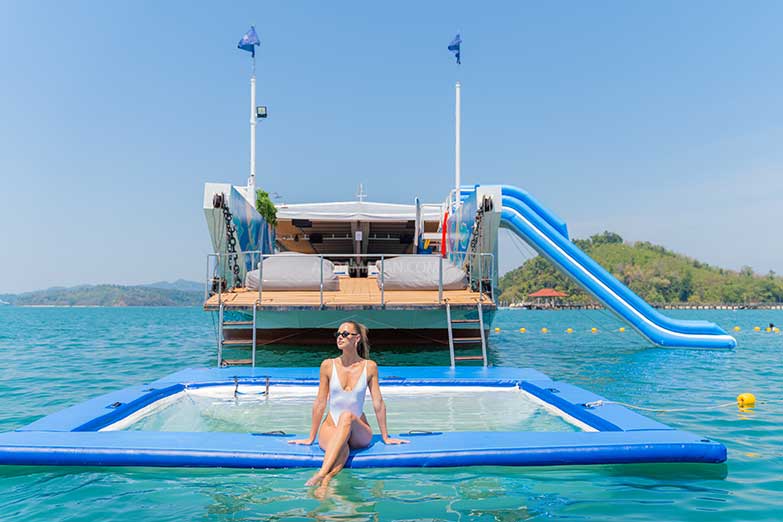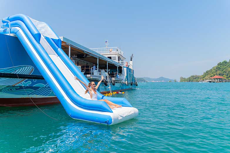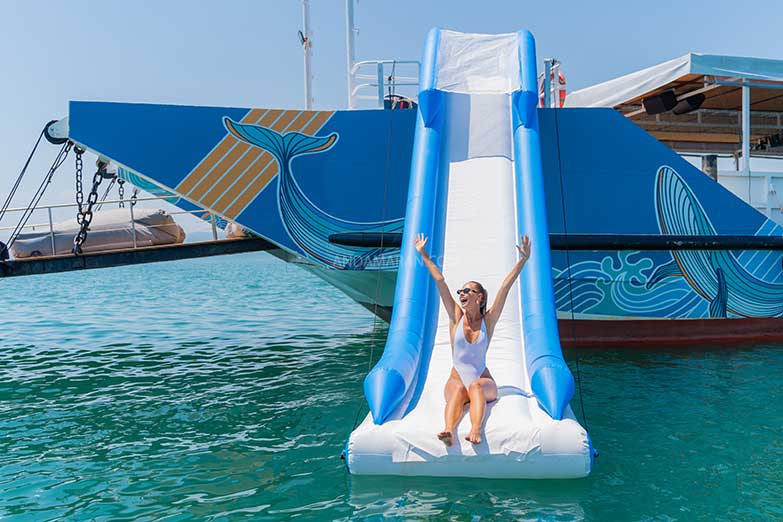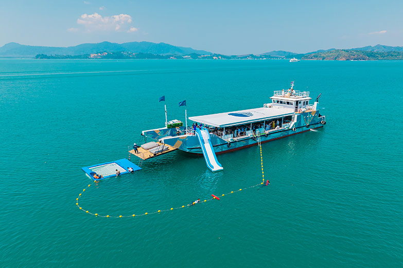 餐饮享受:免费无限量软饮及美味的船上自助午餐。 - Water Activities: Super fun with water slider, floating pool, and paddle boards.